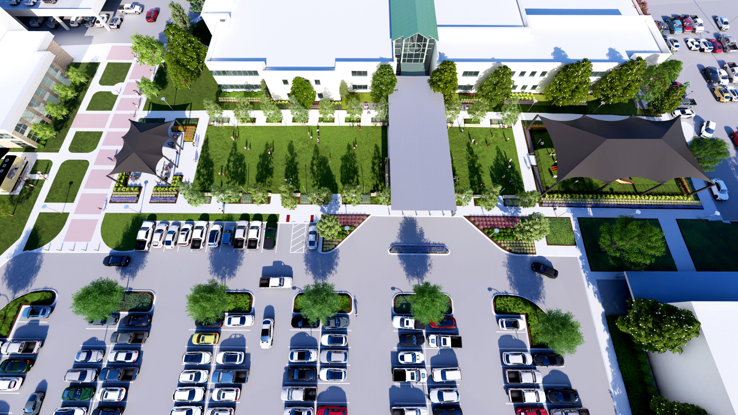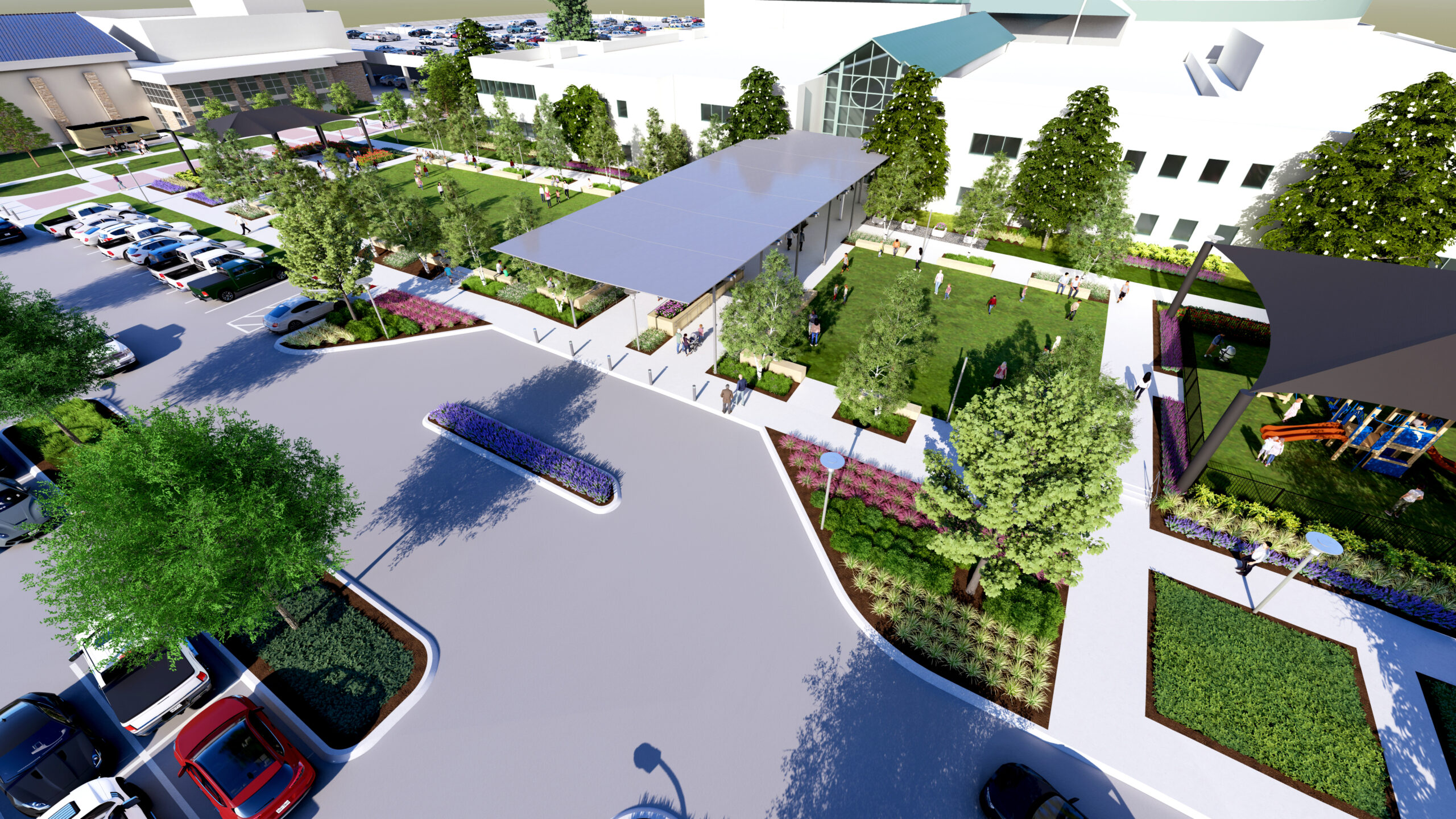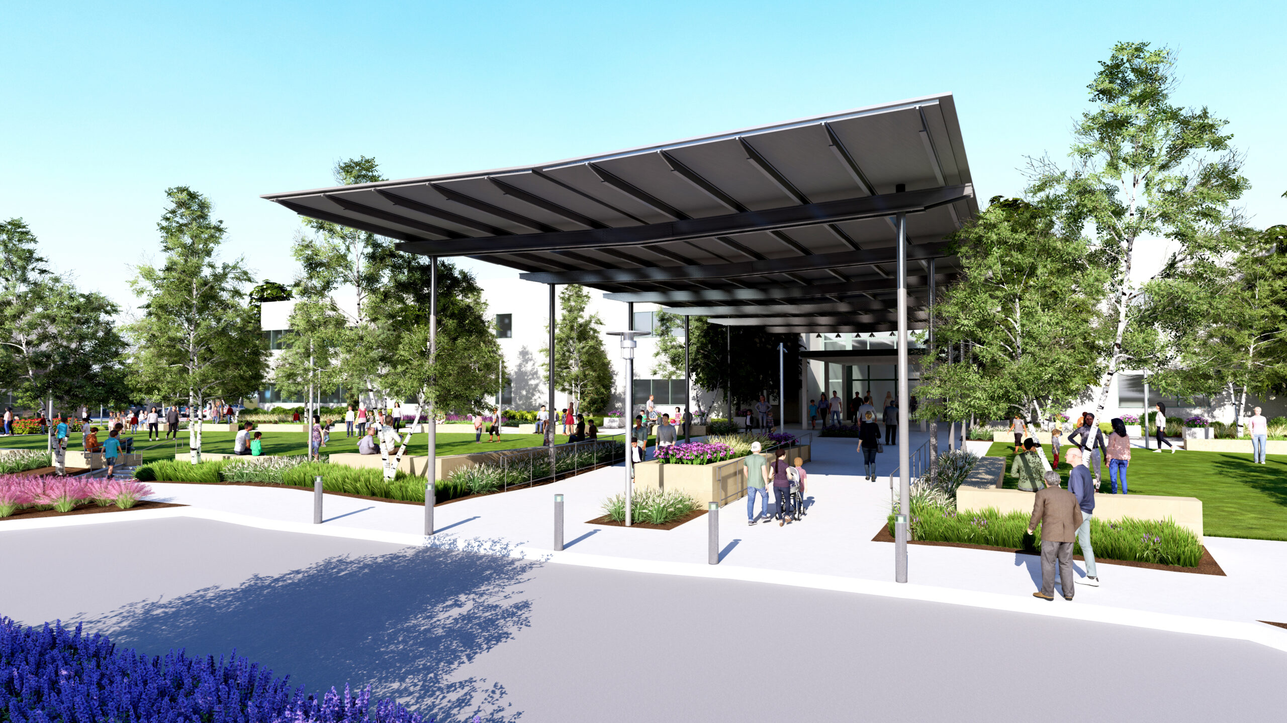 We’re updating the entire south entrance area to create a more welcoming space for connection and community. The renovations will include larger lawn areas to gather, landscaping, an improved shaded walkway, and a playground area perfect for kids.
